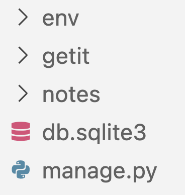 Nosso projeto Django foi definido como getit e o app definimos como notes, pois é a parte de nosso projeto responsável pelas funcionalidades relacionadas as anotações.