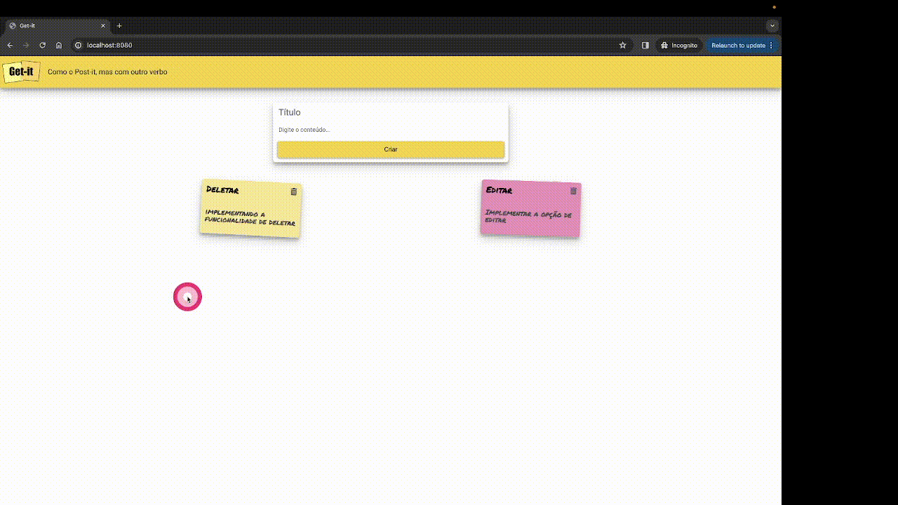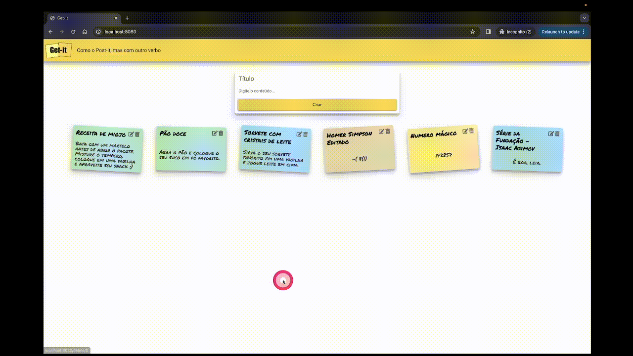 - Adicione um botão/link na nota para a função de editar. Ao clicar no botão de edição, o usuário deve ser direcionado para uma página html nova de edição.